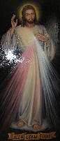 Oryginał znajduje się w Wilnie. To właśnie "ten pierwszy" obraz malowany wg wskazań siostry Faustyny. Pozował do niego sam ksiądz Sopoćko ubrany w albę. Ukochał ten obraz tak bardzo, że już nie potrafił zaakceptować innych i całe życie starał się rozpowszechniać reprodukcje właśnie tego obrazu. |  | Kopia obrazu "Jezus Miłosierny" Adolfa Hyły Olej na płótnie lnianym, 180 x 78 cm