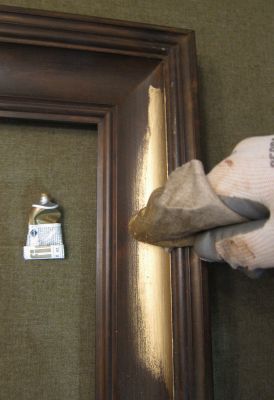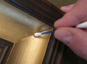 Jeśli chcemy ramie nadać bogatszy wygląd, można niektóre jej elementy pozłocić. Warto wtedy wybrać ramę, w której element złocony ma ostre brzegi. W przeciwnym razie, trudno byłoby nam usyskać równą linię brzegu złota. Do złocenia wykorzystujemy pastę pozłotniczą "goldfinger". W języku angielskim zwrot ten oznacza palec, na którym nosi się obrączkę (serdeczny). Tutaj nazwa ta chyba jest wyrazem faktu, że najłatwiej nakłada się ją gołym palcem. Można szmatką, ale jest to trudniejsze i wbrew pozorom łatwiej zabrudzić złotem miejsca, których nie chcemy nim pokryć. Natomiast w rogach mamy zakamarki, które chcielibyśmy pokryć złotem, a złośliwe złoto nie chce tam się dostać. Pomóc nam może wacik na patyczku.