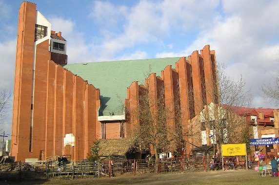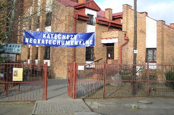 ul. Dereniowa 12 na warszawskim Ursynowie. Wejcie z boku Kocioła (zob. najniższe zdjęcie).